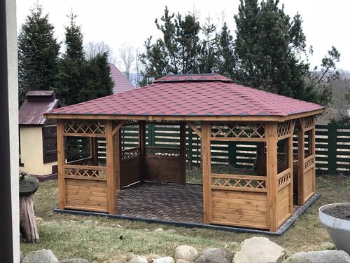 Приступайте к созданию крыши беседки, используя раскройку и деревянные балки. Установите крышу на стены, обеспечивая надежную защиту от погодных условий.