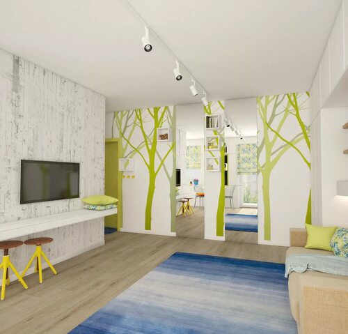 Далее представлены несколько примеров, как можно использовать обои для зонирования однокомнатной квартиры:
