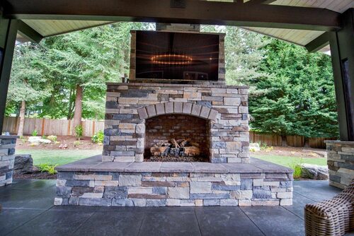 Установите мангал вместе с камином, чтобы создать атмосферу уюта и тепла. Камин может быть изготовлен из кирпича или натурального камня и будет отличным дополнением к мангалу.