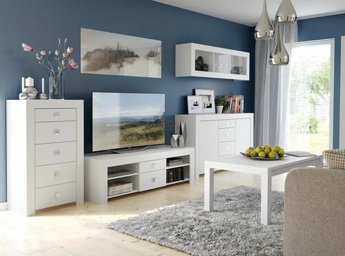 Белая мебель придает гостиной стильный и элегантный вид. Она добавляет нотку роскоши и изысканности в интерьер. Белая мебель может быть выполнена в различных стилях - от современного и минималистичного до классического и ретро, что позволяет подобрать подходящий стиль для любого интерьера.