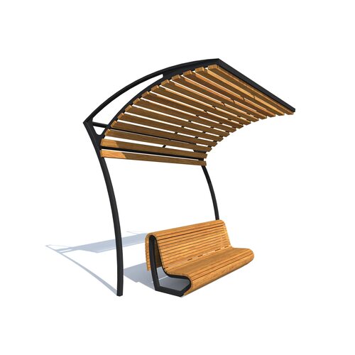 3. Фото скамейки в минималистичном стиле с полупрозрачным навесом;