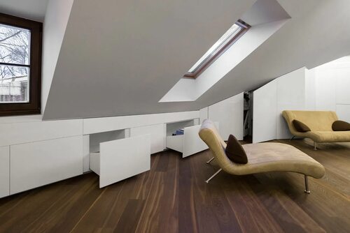 3. Функциональность: Мансарда в современном стиле строится с учетом функциональности. Использование встроенной мебели, скрытых хранительных систем и многофункциональных элементов позволяет максимально использовать доступное пространство.