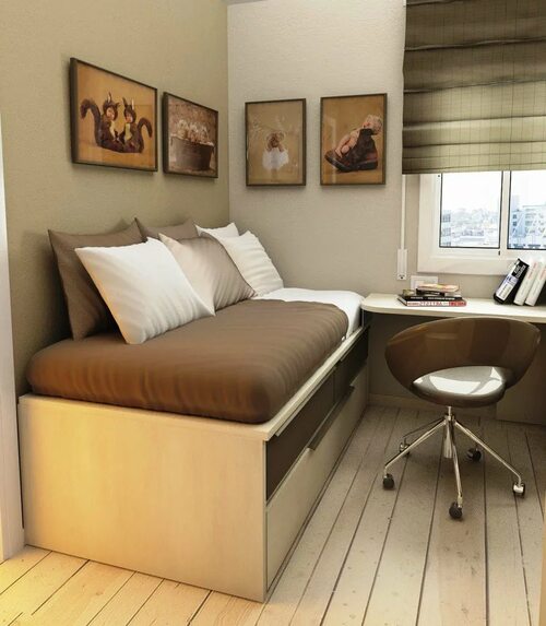 Одна из главных проблем небольших комнат - это ограниченное пространство для хранения. Используйте много функциональных мебельных решений, таких как кровати с ящиками, шкафы с выдвижными ящиками или полки на стенах. Также учтите вертикальное пространство и используйте полки до потолка.