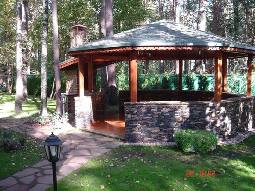 Особенности дизайна круглой беседки с мангалом