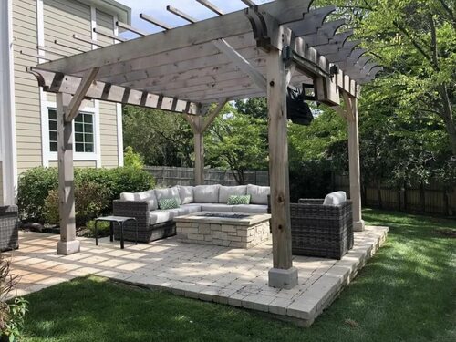 Также можно создать зону барбекю или кухню на патио с навесом. Установите гриль, стол и стулья для готовки и приготовления пищи на свежем воздухе.
