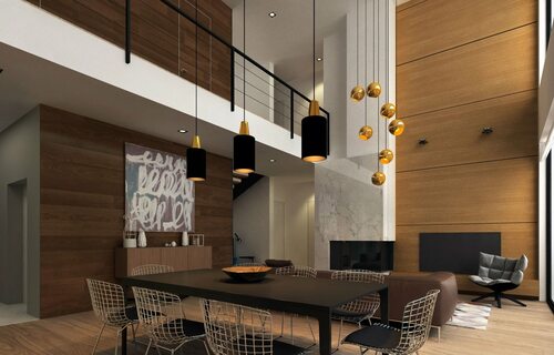 Лаконичный дизайн предполагает использование открытых пространств и максимальное проникновение естественного света. Поэтому при создании интерьера загородного дома стоит уделить внимание планировке помещений и размещению окон. Открытые планировки позволяют создать ощущение простора, а большие окна наполняют помещение светом, что делает его более светлым и воздушным.