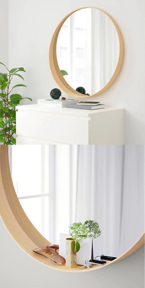 Ванная комната – это место, где мы проводим время, заботясь о себе. Зеркало Стокгольм отлично впишется в интерьер ванной комнаты, добавляя ей стильности и функциональности. Разместите его над раковиной или полкой с косметикой, чтобы иметь удобный доступ к зеркалу во время утреннего ритуала. Зеркало с полкой или шкафчиком также поможет организовать пространство и хранить необходимые вещи.