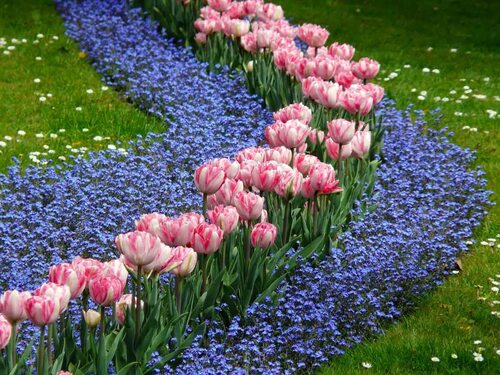 Незабудка прекрасно смотрится как в одиночных посадках, так и в композициях с другими цветами и растениями. Ее голубые или фиолетовые цветки добавляют нотку яркости и романтики в садовый ландшафт. Незабудка также хорошо сочетается с другими цветами и может использоваться для создания контрастных композиций.
