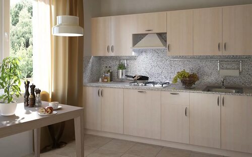 (Вставьте фотографии бежевой кухни Leroy Merlin)