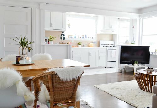 2. Минимализм. Создайте минималистичный интерьер с простыми формами и лаконичной мебелью в белом цвете.