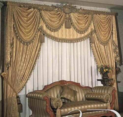 Имперский стиль отличается роскошью и величием. Шторы в этом стиле могут быть выполнены из броката с золотыми или серебряными узорами. Дополнительные драпировки и бахрома придают шторам особую изысканность и шарм. Имперский стиль идеально подойдет для создания роскошного и монументального интерьера.