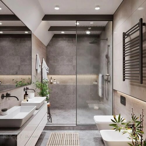 Фото №1: Минималистичный дизайн ванных комнаты с душевой.