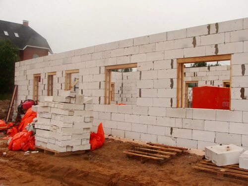 Установите первый ряд газоблока на ровную горизонтальную поверхность, используя уровень для проверки. Убедитесь, что блоки плотно прилегают друг к другу и соблюдается необходимый зазор для швов.