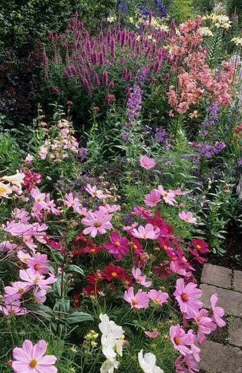 Это очень нежное и романтическое сочетание. Розовая космея будет выглядеть очень изящно на фоне белых флоксов, создавая впечатление облака нежных цветов.