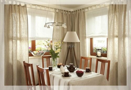 Одним из популярных вариантов является использование бежевой тюли в сочетании с шторами. Вы можете выбрать шторы в том же цвете или в контрастных оттенках, чтобы создать интересный акцент в кухонном пространстве. Это добавит глубину и объем вашим окнам, а также создаст уютную атмосферу.