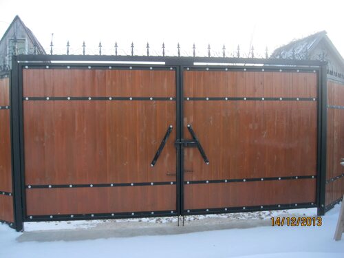 Процесс изготовления деревянных ворот на металлическом каркасе включает несколько этапов: