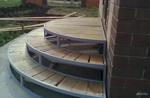 Ступеньки полукругом придают саду особый шарм и индивидуальность. Они выглядят элегантно и привлекательно, привносят нотку оригинальности в общую композицию садового пространства.