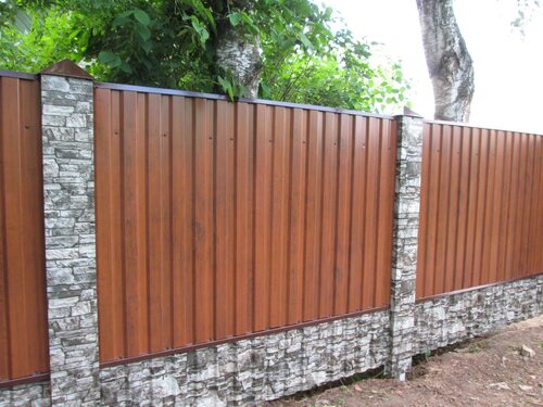 Если вы предпочитаете сочетание разных материалов, то можно создать забор из профнастила с деревянными или каменными вставками. Такая комбинация придаст забору уникальный вид и добавит некоторую природную нотку.