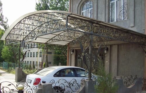 Фото 1: Классический навес с изящными узорами и кованой отделкой.