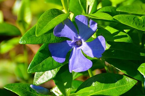 Барвинок большой - это более крупное растение, чем обыкновенный барвинок. Он имеет большие темно-зеленые листья и сине-фиолетовые или белые цветки. Барвинок большой отличается быстрым ростом и может использоваться для создания густых зеленых покрытий на больших участках. Он также хорошо переносит тень и влажность, поэтому подходит для озеленения садов и парков.