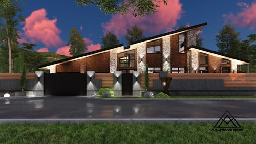 Одноэтажный дом в стиле Шале из кирпича представляет собой уютное и стильное жилище, которое пользуется популярностью среди многих людей. Этот дизайн и архитектура напоминают традиционные шале, которые можно встретить в горных регионах. Сочетание кирпичных стен, деревянных элементов и крыши с четкими линиями создает привлекательный и уникальный облик дома.
