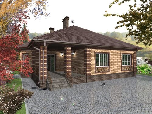 Терраса является неотъемлемой частью одноэтажных домов из кирпича. Фото таких домов показывают разнообразие вариантов оформления террасы.