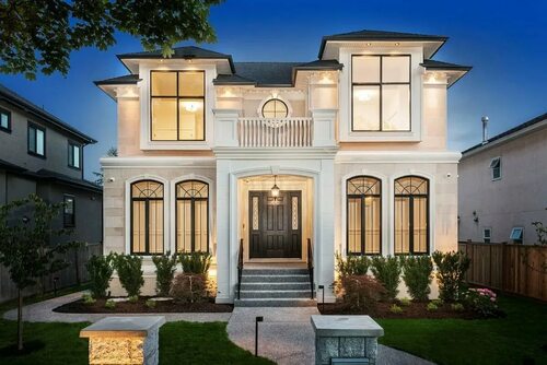 Классические дома отличаются гармоничными пропорциями, где каждая деталь и элемент фасада имеют свое место. Это создает величественный облик и удивительную визуальную привлекательность.