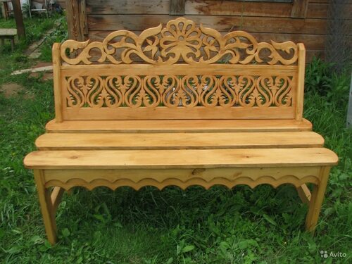 Ниже представлены фотографии различных моделей резных скамеек из дерева:
