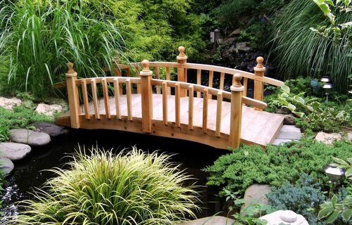 Японский стиль в дизайне сада известен своей элегантностью и гармонией. Декоративные мосты в японском стиле часто имеют изгибы и красиво интегрируются в окружающую природу. Они могут быть выполнены из дерева или камня, а также украшены ландшафтными растениями или маленькими водопадами.