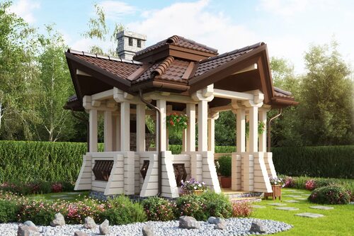Классические деревянные беседки имеют изящные формы и прекрасно вписываются в любой стиль сада. Они обычно имеют крышу, защищающую от солнца и неблагоприятных погодных условий. Крыша может быть покрыта соломой, шифером или деревянными плитами, что добавляет дополнительный шарм и уникальность.