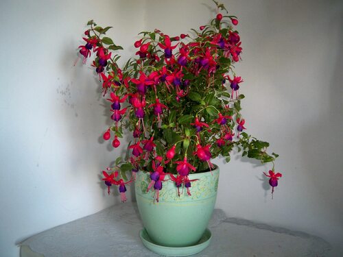 Фуксия домашняя требует регулярного полива, особенно в жаркое время года. Важно поддерживать уровень влажности почвы, но не переувлажнять ее, чтобы избежать гниения корней. Также необходимо регулярно подкармливать растение удобрениями, содержащими основные макро- и микроэлементы.