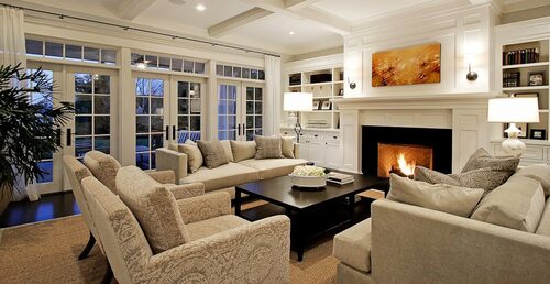 Классический стиль подразумевает использование дорогих материалов, изысканных мебельных изделий и деталей декора. Он придаст вашей гостиной изысканность и элегантность.