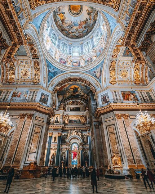 Исаакиевский собор был построен в XIX веке в стиле неоклассицизма и является одним из самых крупных храмов в мире. Его интерьер отличается величественной архитектурой, впечатляющими колоннами, уникальными арками и витражными окнами. Фотографии собора позволяют полностью ощутить масштабность и красоту его интерьера.