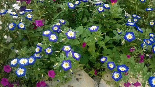 Вы можете создать красивую альпийскую горку, используя вьюнок трехцветный в сочетании с камнями и другими растениями. Также его можно использовать для обрамления дорожек или арок в саду.
