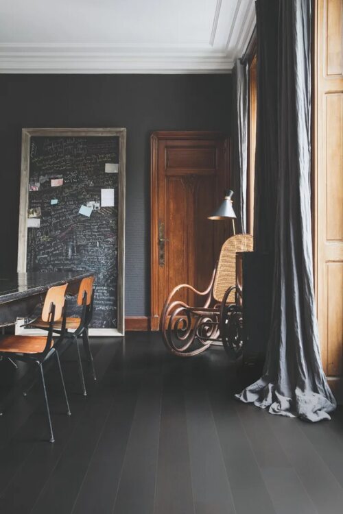 3. Визуальное увеличение пространства. Черный цвет визуально расширяет пространство и придает ему глубину. Это особенно актуально для небольших помещений, которые можно визуально увеличить с помощью черного паркета.