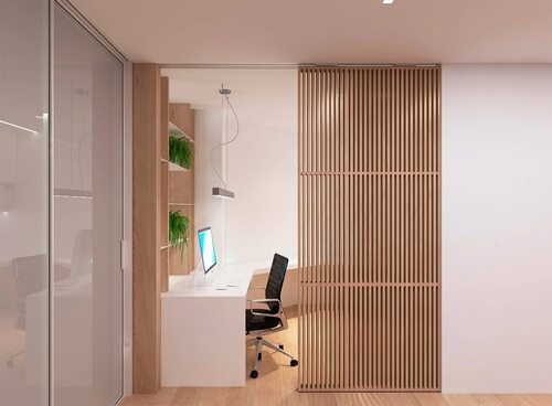 С помощью ламелей можно легко регулировать степень прозрачности перегородки. Они могут быть открытыми, полупрозрачными или закрытыми, в зависимости от нужд и предпочтений.