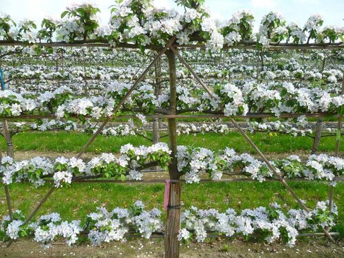 Выращивание черешни на шпалере имеет несколько преимуществ: