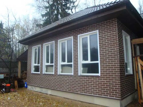 Фотографии отделки фасадов щитовых домов фасадными панелями