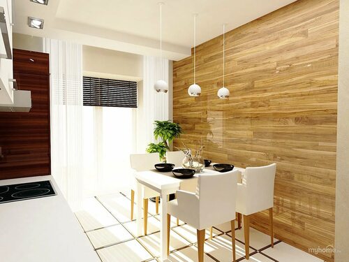 Фото 3: Кухня с деревянным ламинатом на стенах