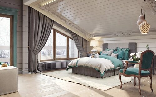 Спальня на мансарде в деревянном доме выглядит особенно уютно, если использовать натуральные оттенки. Например, можно выбрать пастельные цвета, такие как бежевый, светло-серый или мятный. Такая цветовая гамма поможет создать атмосферу спокойствия и релаксации.
