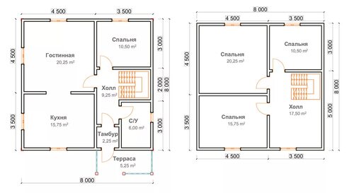 Одно из преимуществ современных двухэтажных домов 8 на 8 метров – это возможность создать открытую планировку, которая позволяет свободно передвигаться между помещениями и создает ощущение простора. Фото примеров таких домов вы можете увидеть ниже: