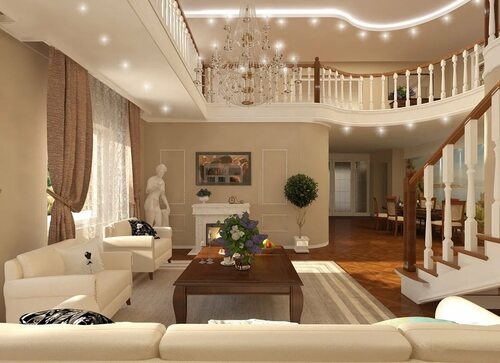 Ниже представлены примеры интерьеров больших гостиных в частных домах, которые могут служить вдохновением при создании дизайна вашей гостиной.