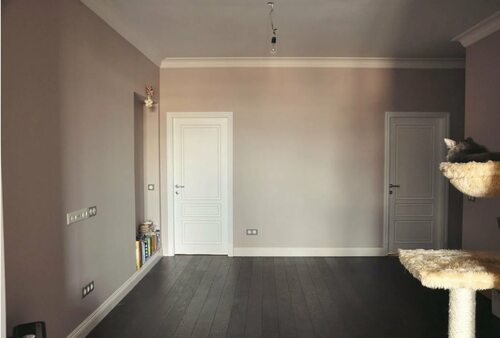 Очень элегантный и стильный вариант интерьера, где черный пол и белые стены создают эффектное сочетание. Черные детали мебели и аксессуары добавляют дополнительную глубину и контраст в пространство.