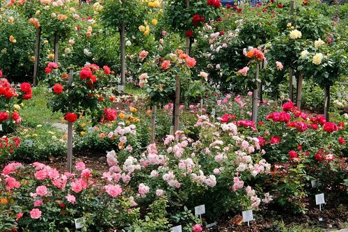 Выбор подходящих сортов роз - важный момент при создании розария. Розы могут быть разных цветов, формы и размеров, поэтому рекомендуется выбирать сорта, которые будут гармонично сочетаться друг с другом и с остальными растениями в саду.