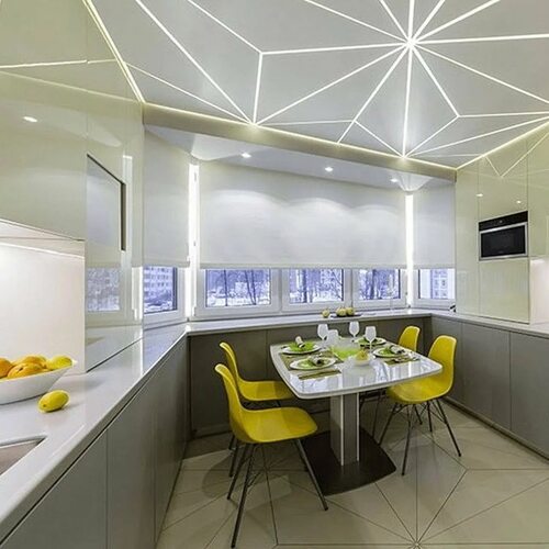 Одним из самых популярных способов использования световых линий в интерьере является размещение их на потолке. Потолочные световые линии могут создать эффект плавности и визуально увеличить высоту помещения. Они также могут служить дополнительным источником освещения и добавить атмосферности в комнату.