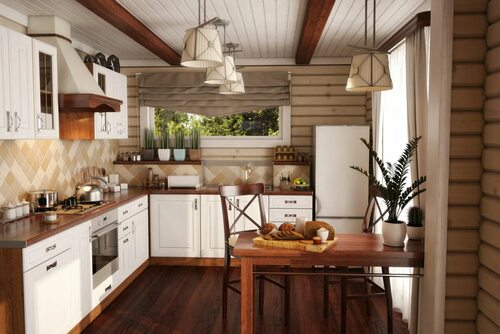 Для создания стильного интерьера кухни в брусовом доме, выбирайте мебель из натурального дерева. Она будет гармонично сочетаться с деревянными стенами и создаст общую концепцию помещения.