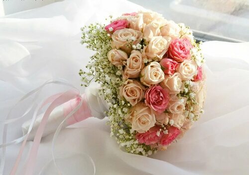 Каскадный букет из роз – это букет, который имеет форму каскада, с ниспадающими ветвями и россыпью роз. Такой букет выглядит очень эффектно и романтично, добавляя нотку изысканности к образу невесты. Каскадный букет из роз идеально сочетается с пышными свадебными платьями.