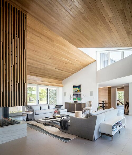 Другой интересный вариант для интерьера потолков в деревянном доме - это потолки с панелями из дерева. Такие панели могут быть выполнены в различных стилях и оттенках, и они добавят в ваш дом элементы оригинальности и индивидуальности. Вы можете создать геометрические узоры или использовать панели с резными элементами для создания уникального дизайна.