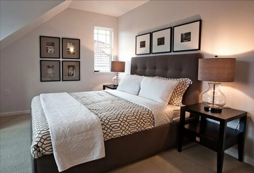 Сочетание коричневой кровати с другими элементами интерьера