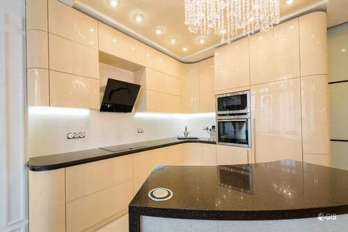 Преимущества глянцевых бежевых кухонь